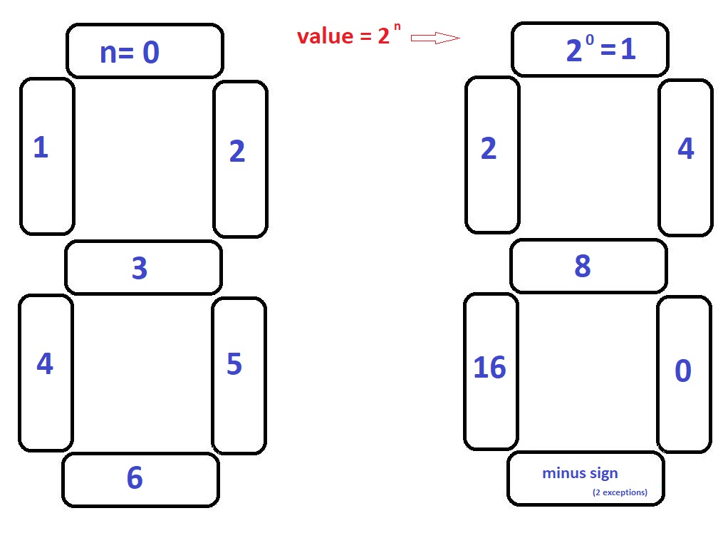Obraz wart tysiąca słów, więc wrzucam ilustracje. Poniżej pokazane jest, jakie wartości tworzą zaciemniane pola Symbole cyfr stają się czymś w rodzaju kalkulatora, więc dla uczących się, małych dzieci, operacje na takich cyfrach, i zbudowanych z nich liczbach — będą przypominać układankę z klocków, co znacznie ułatwi, i przyspieszy naukę...