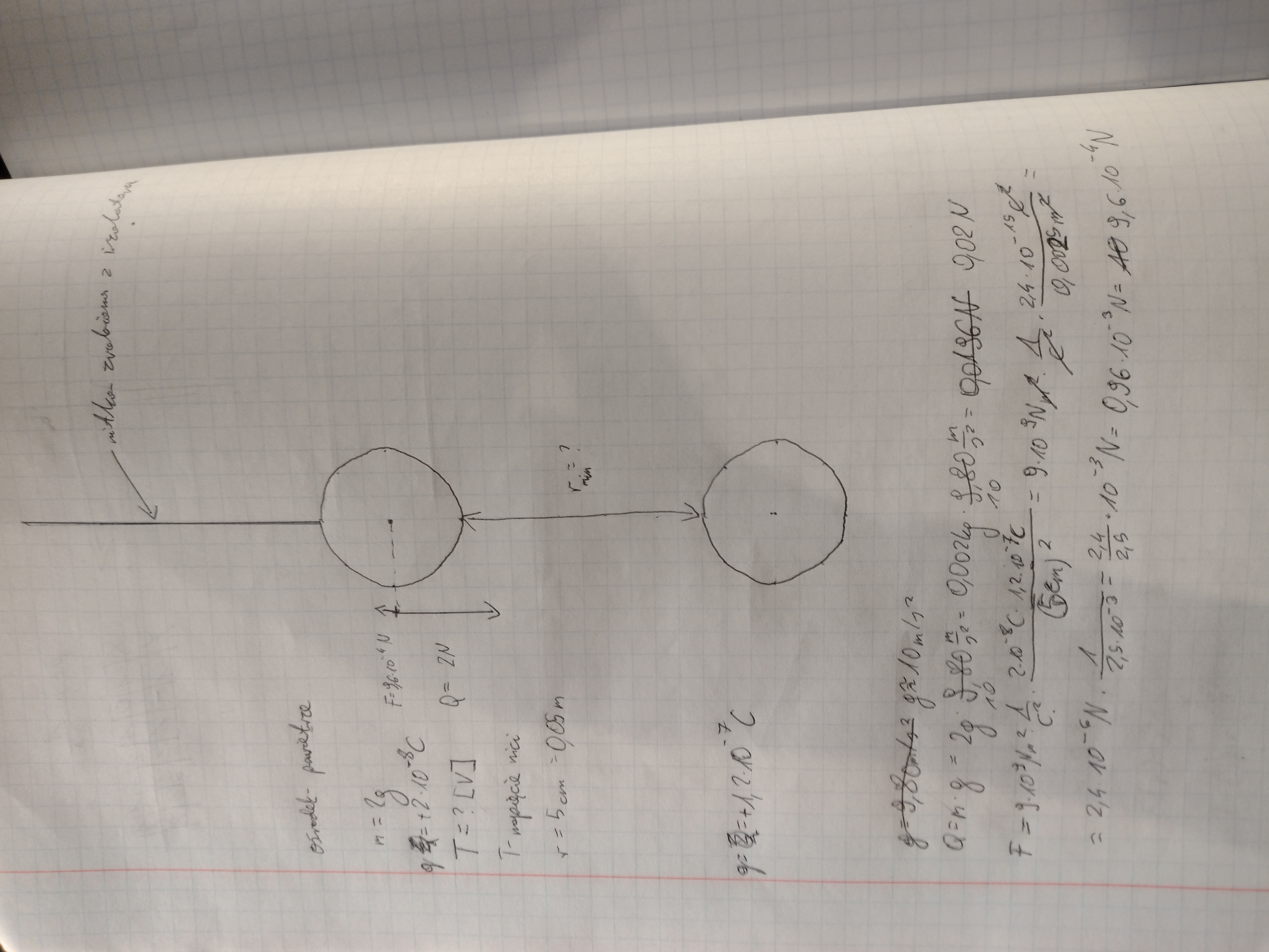 Siłę grawitacji i Coulomba już policzyłem, czy dobrze rozumiem, że powinienem teraz podstawić za napięcie nici \(\displaystyle{ T = 0}\) i wyliczyć z tego odległość "między średnicami ładunków"?