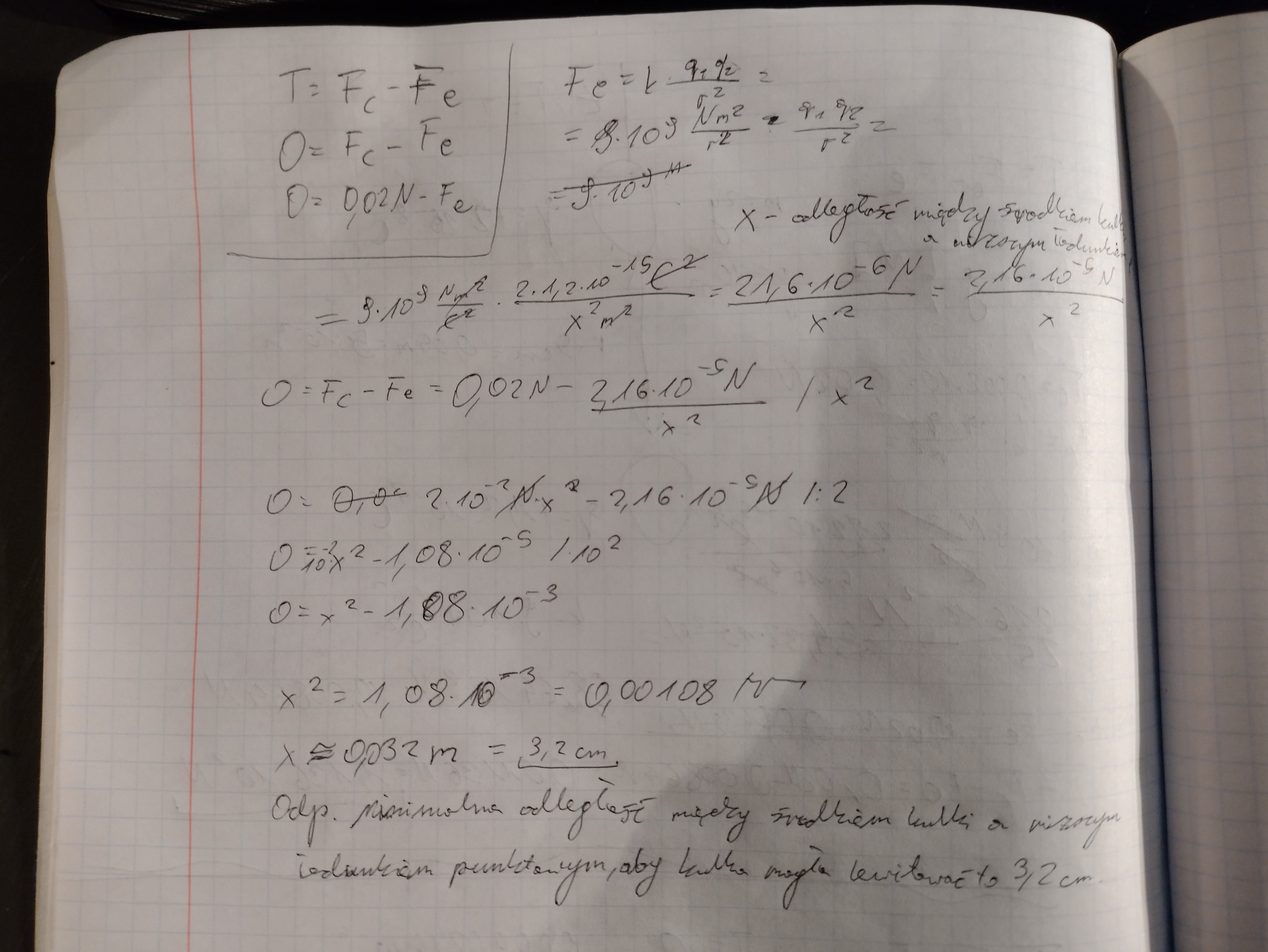 stary_wyjadacz_cyfr pisze: 24 kwie 2022, o 16:47 Z Jaka jest minimalna odległość między kulką a ładunkiem, aby kulka za-