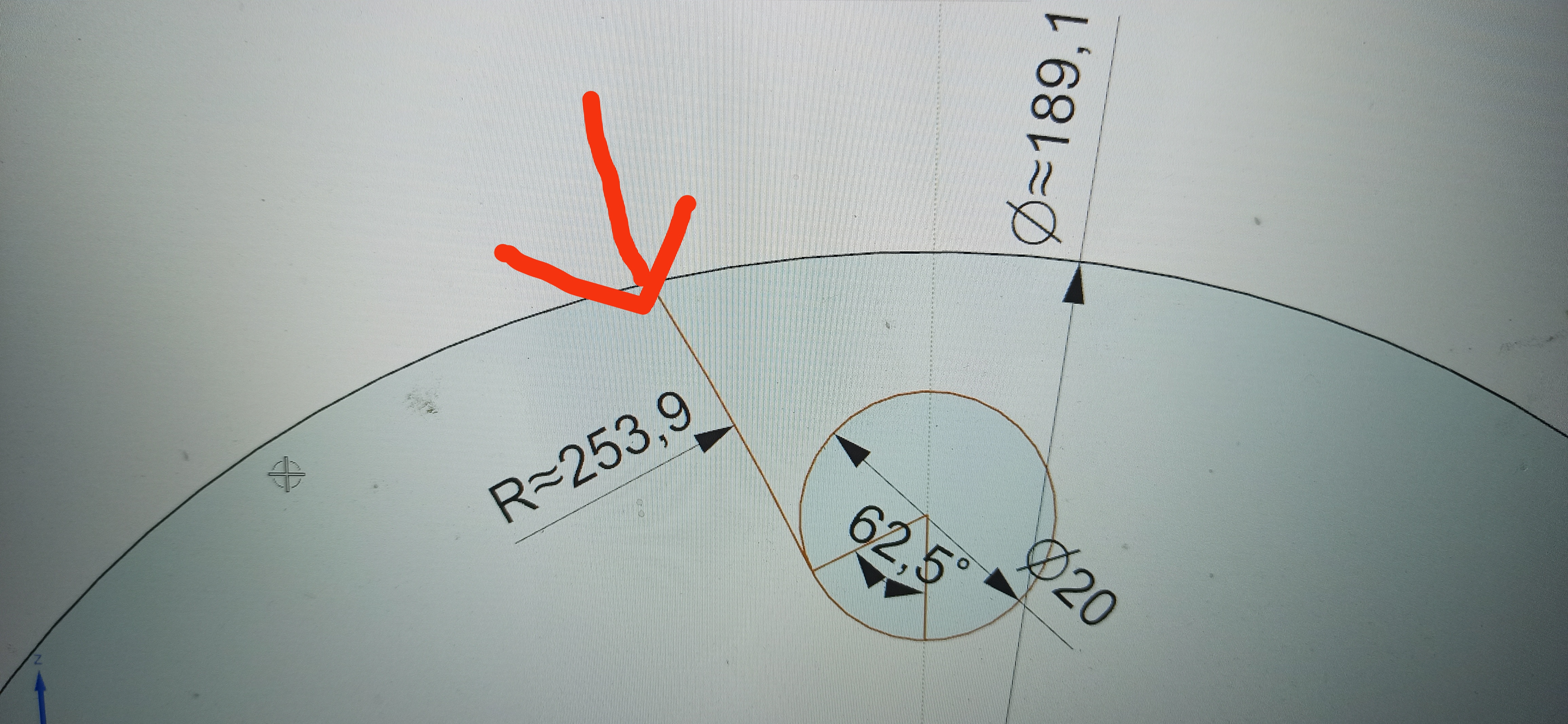 Witam, prosiłbym o pomoc i nakierowanie mnie jak obliczyć punkt zaznaczony na zdjęciu. Punkt od którego idzie łuk styczny potrafię obliczyć, ale dalej brakuje mi już pomysłów.