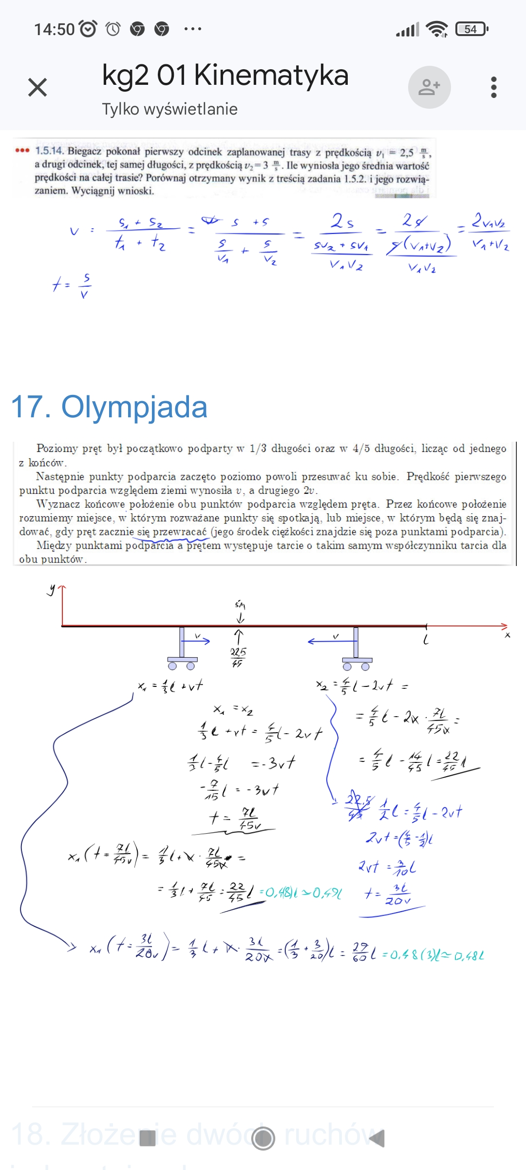 Określono równania ruch jednostajnego-prostoliniowego położenia(drogi) punktów podparcia : \(\displaystyle{ x_{1}(t), \ \ x_{2}(t). }\)