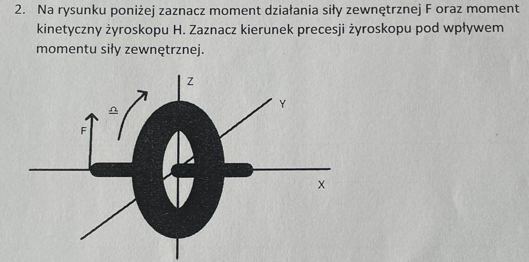 Witam, bardzo prosiłbym o pomoc w zaznaczeniu na rysunku wymaganych w zadaniu wektorów. Niestety pojawiło się na studiach, a fizykę miałem daaaaawno temu ;P Kierunek precesji znam, chodzi głównie o moment siły zewnętrznej i moment pędu