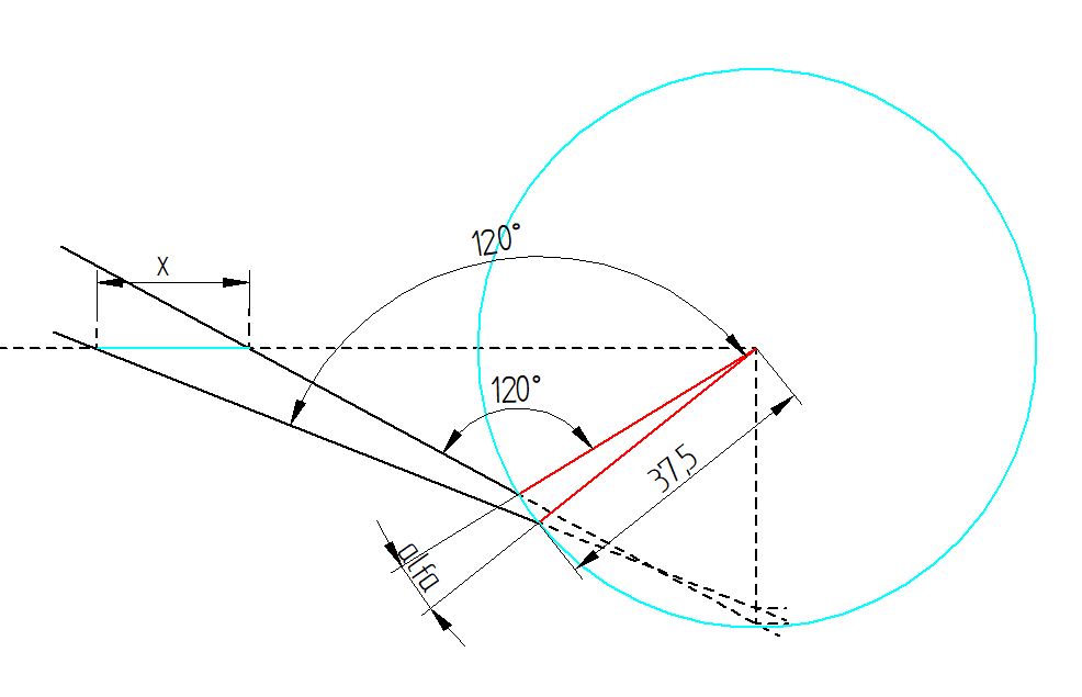 potrzebuję znaleźć jakąś zależność funkcji kąta alfa od przesunięcia x.