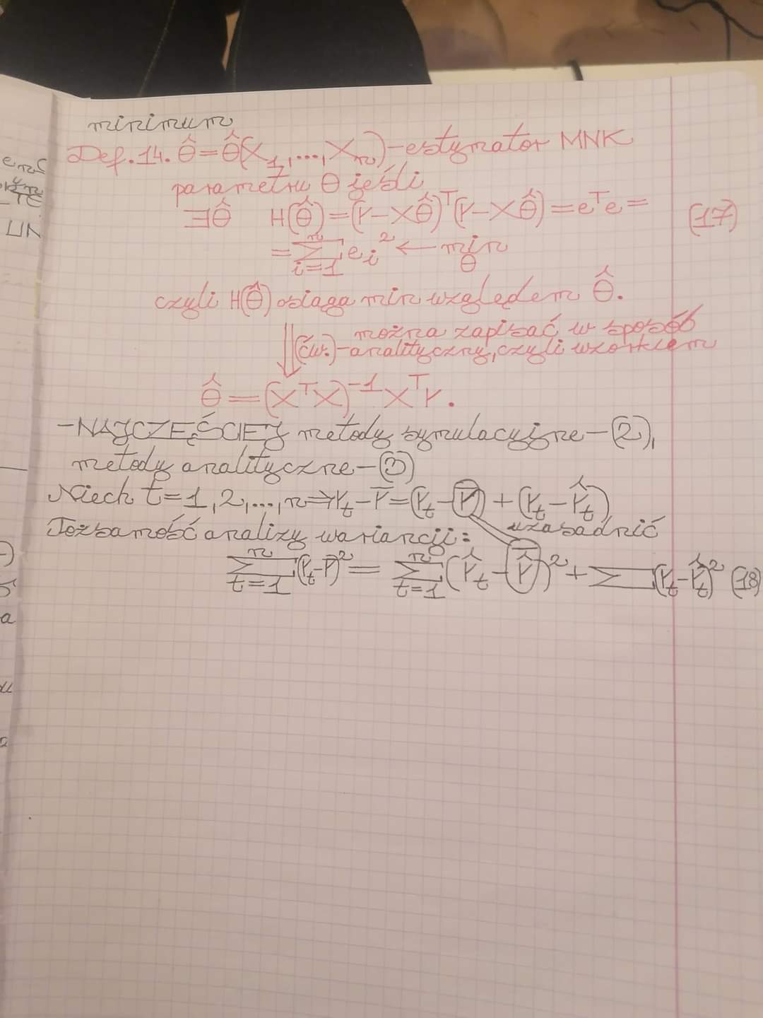 Wie ktoś może jak uzasadnić równość tego, co jest zaznaczone w kółeczkach i wyprowadzić tożsamość analizy wariancji? Zadanie pochodzi ze statystyki a konkretniej z rozdziału dotyczącego metody najmniejszych kwadratów.