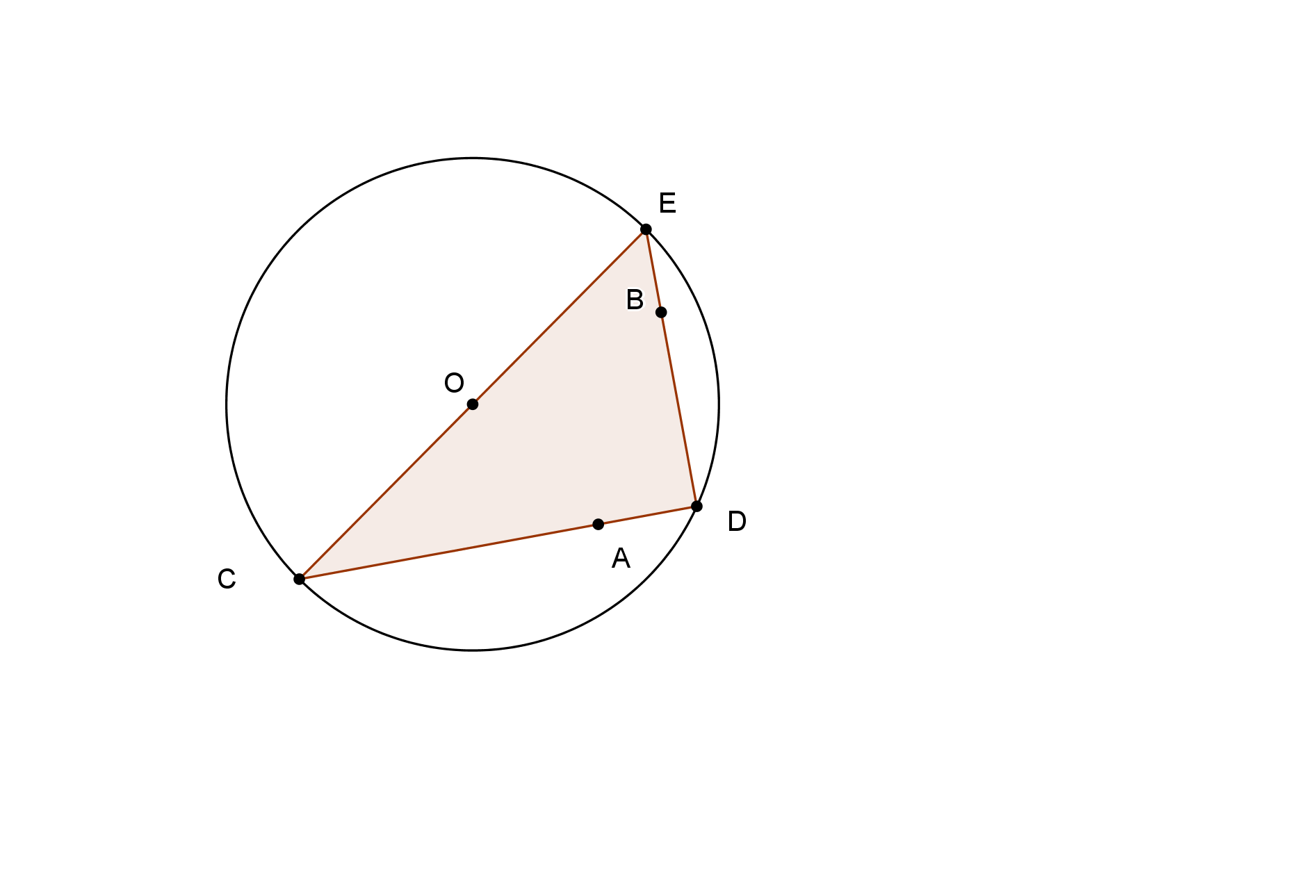 Dane jest koło oraz dwa punkty leżące wewnątrz niego. Wpisz w to koło trójkąt prostokątny, którego każda przyprostokątna przechodzi przez jeden z danych punktów.